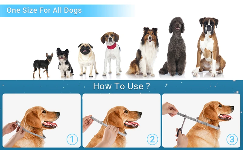 4. Идеальный Размер: регулируемый размер: 27.56 дюймов/70 см, Регулируемый один размер подходит всем; Воротник подходит для маленьких, средних и больших собак .. Просто Отрегулируйте воротник, чтобы соответствовать длине, которая вам нужна, и отрежьте любую оставшуюся длину.