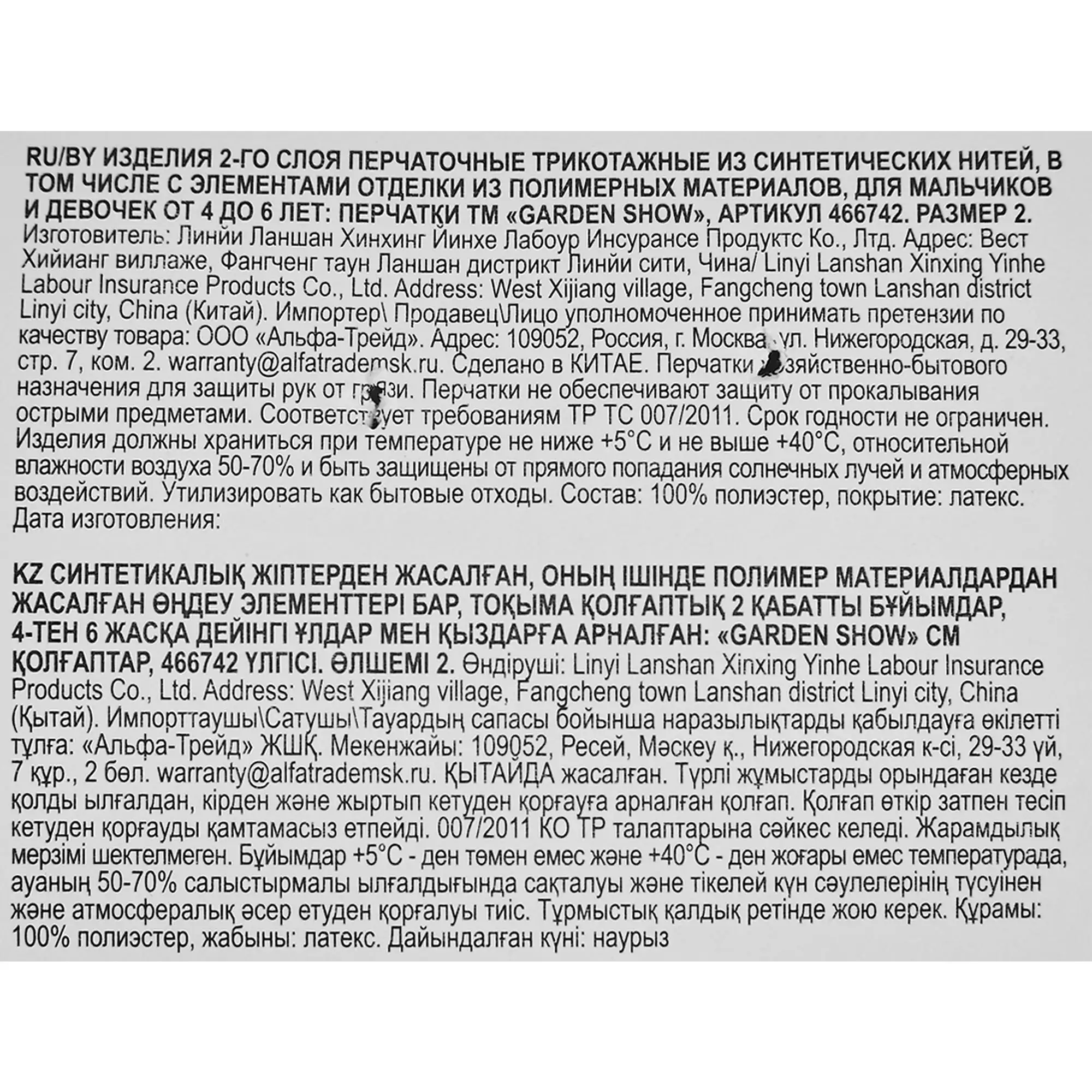 Перчатки полиэстровые детские 6-8 лет "Облака", размер 5