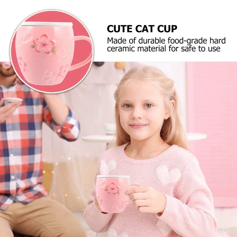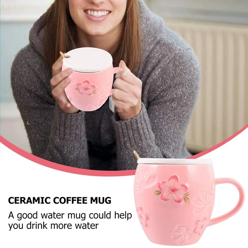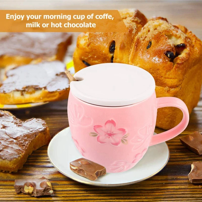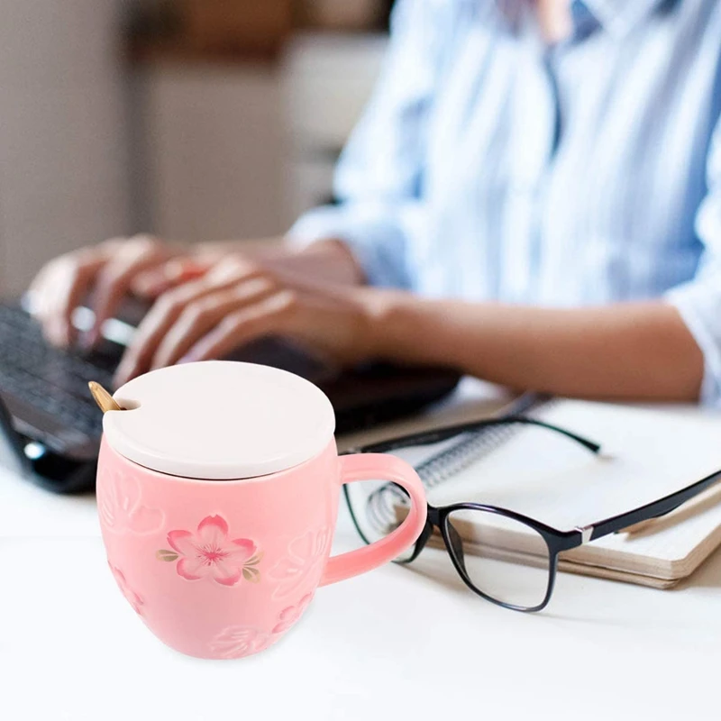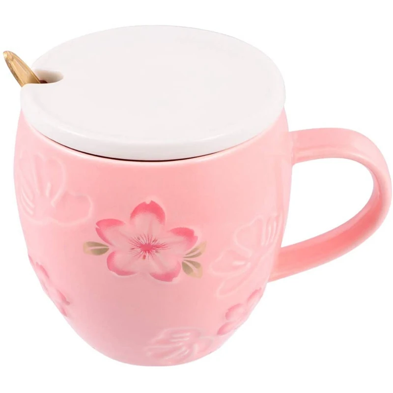 Акция! Розовая керамическая чашка набор милая чашка керамическая кофейная чашка кофе чашка подарок на день рождения с керамической крышкой Ложка 400M