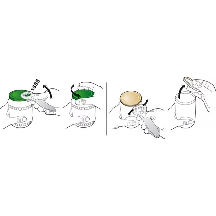 Идеально подходит для открывания консервных банок с завинчивающимися крышками и крышками без резьбы. Размер: 15 см.