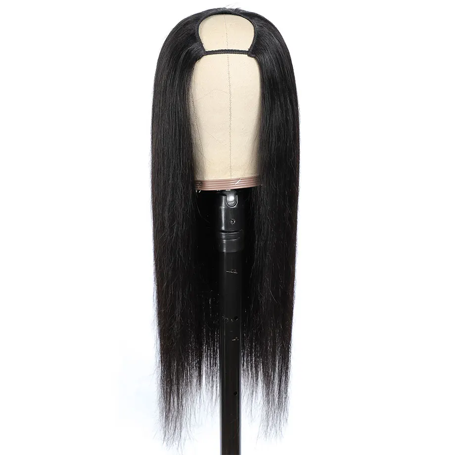 U Part Human Hair Wig is High Quality, No Smell, Tangle Free, Natural Black Color, Can Be Bleached and Dyed.