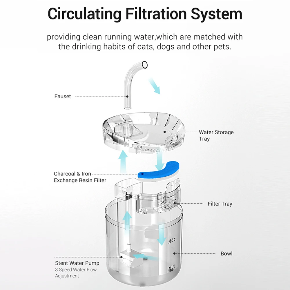 Не нужно часто пополнять воду, и она может удовлетворить питьевые потребности кошек, собак, птиц и других домашних животных различных размеров. Не нужно беспокоиться о том, что ваши питомцы не получают достаточно свежего напитка, когда вы идете на работу.