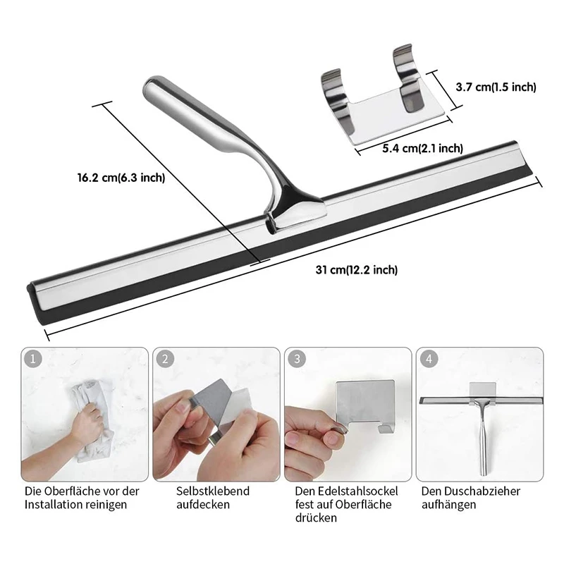 Материал: насадка для душа с ручкой из нержавеющей стали, Сменное лезвие стеклоочистителя изготовлено из высококачественного, не слишком жесткое и не слишком мягкое, более прочное, чем другие щетки стеклоочистителя. С точным краем эффективно удаляет капли воды с любой плоской и гладкой поверхности быстро и с легкостью.