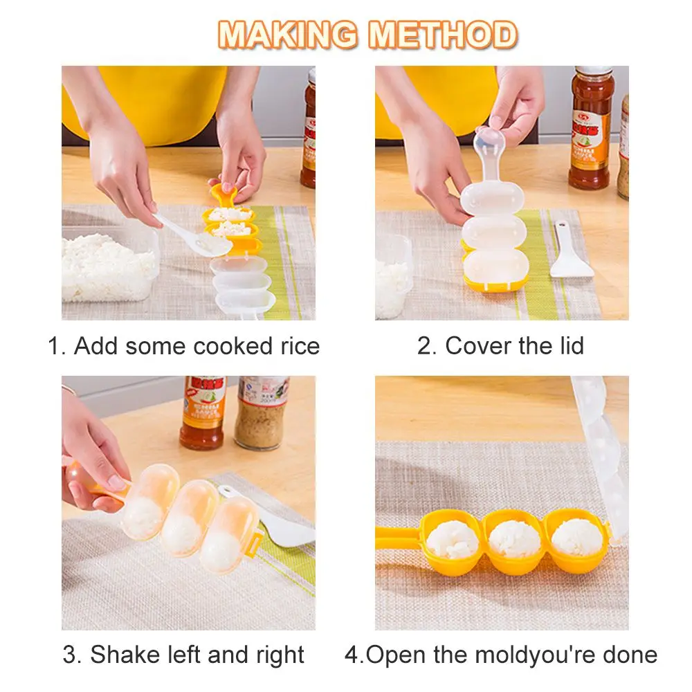 Описание: 100% новый и высокое качество Материал: пищевой полипропиленовый материал Размер: 17*6,5 см, 13,3*4,5 см Вес нетто: около 40 г Цвет: как показано Посылка включает в себя: 1 шт. форма для рисовых шариков + 1 шт. рисовый совок Встряхните форма для рисовых шариков, чтобы ваш ребенок был влюбиться в еды. Просто встряхните, круглые рисовые шарики могут быть сформированы. Веселые и интересные дети своими руками. Крышка прозрачная и видимая, что удобно для наблюдения за результатами тряски Принесите рисовый совок, легко совать и обслуживать рис Безопасный и экологически чистый, пищевой PP материал Взаимодействие родителей и детей, увеличивает удовольствие от детского питания Встряхните артефакт рисового шарика и сделайте это легко Как использовать: 1. Разверните слой воды на пресс-форме (для легкого снесения), а затем добавьте горячий рис 2. Закройте крышку, удерживайте ручку и встряхните более чем в десять раз 3. Откройте форму, и маленькие рисовые шарики образуются
