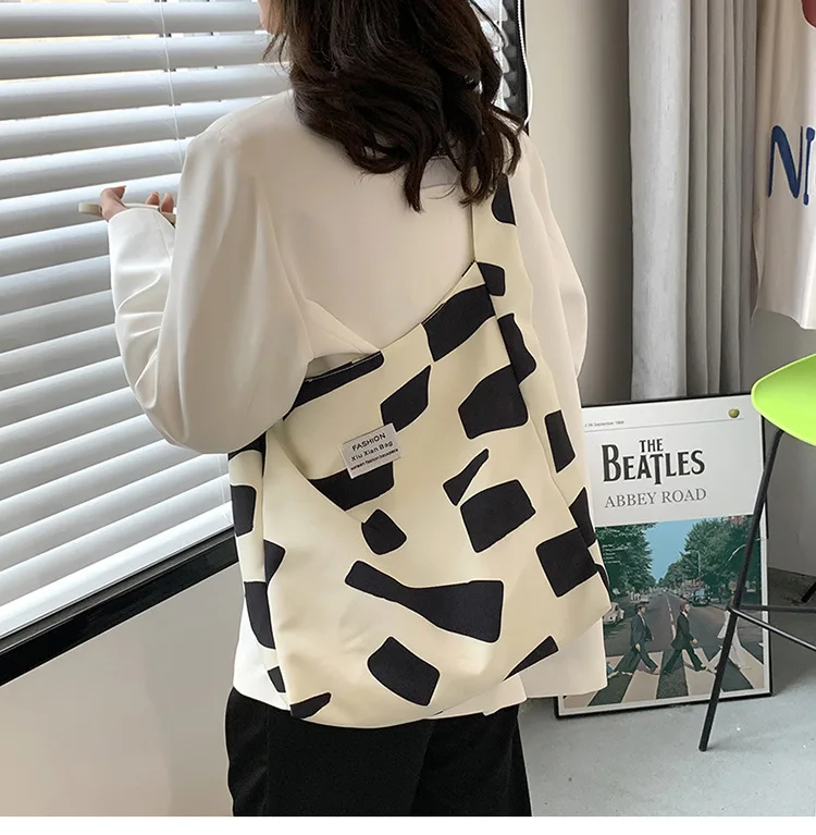 Women's Bag Cheap Casual Large Capacity Shoulder Bags Shopper Canvas Fashion Harajuku Zipper Print Handbags B293