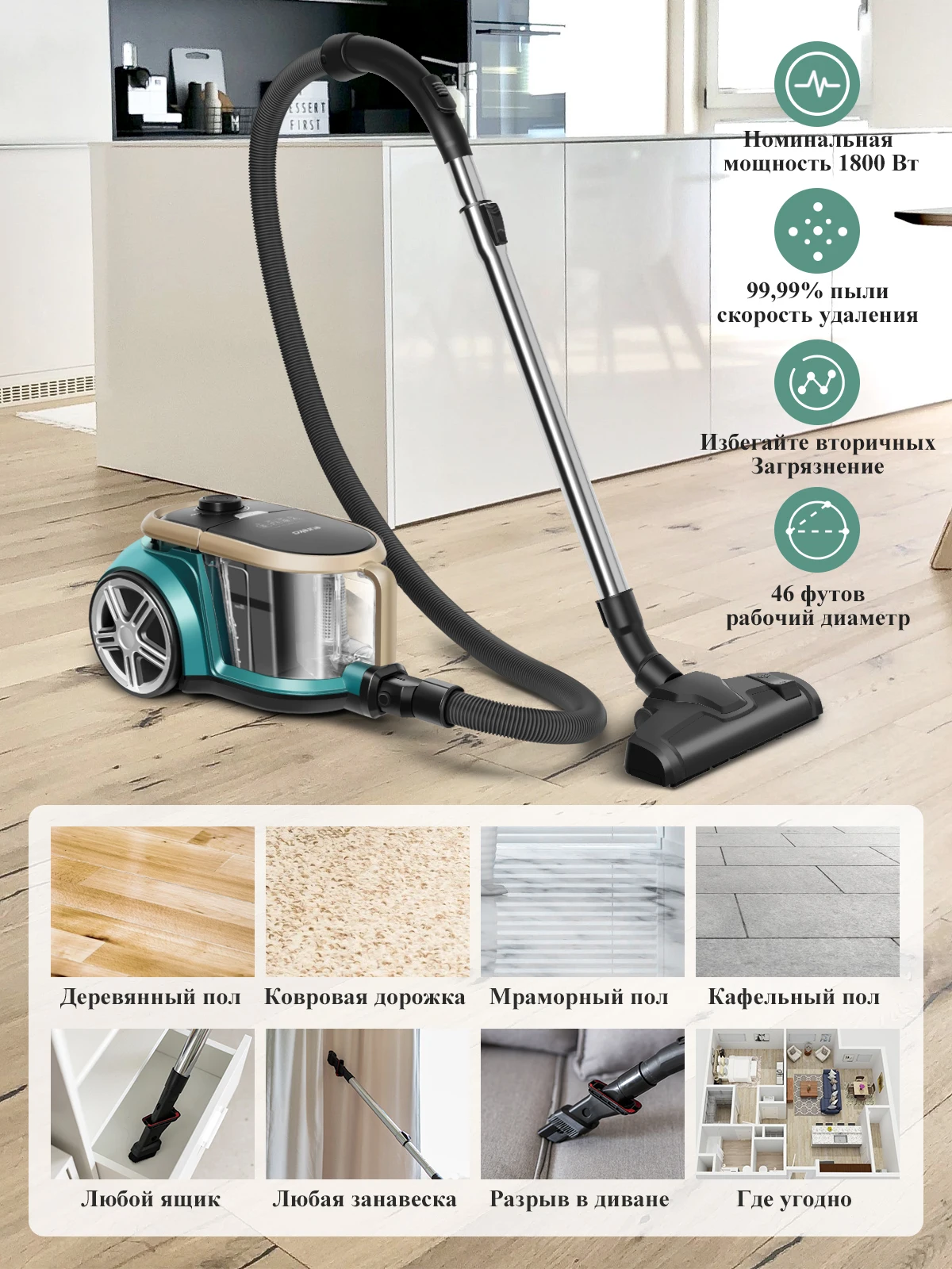 Мощный всасывающий пылесос 21Kpa (RU)