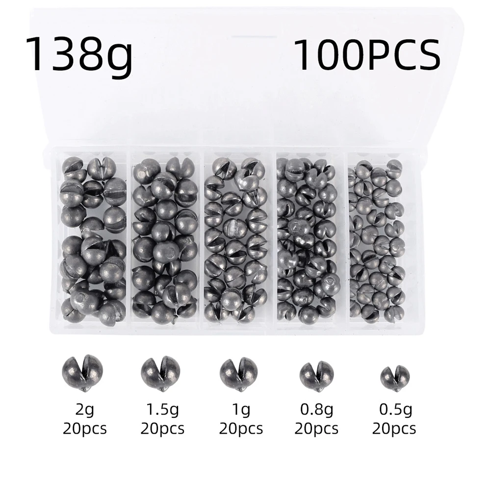 Feature: Excellent carbon steel material. They are stored in durable boxes for easy portability. A great fishing tool for fishing enthusiasts. Specification: Material: carbon steel Quantity: 100pcs 01: 2g*20, 1.5g*20, 1g*20, 0.8g*20, 0.5g*20 02: 2g*20, 1.5g*20, 1g*20, 0.5g*20, 0.2g*20 Note: Due to the different monitor and light effect, the actual color of the item might be slightly different from the color showed on the pictures. Thank you! Please allow 1-2cm measuring deviation due to manual measurement.