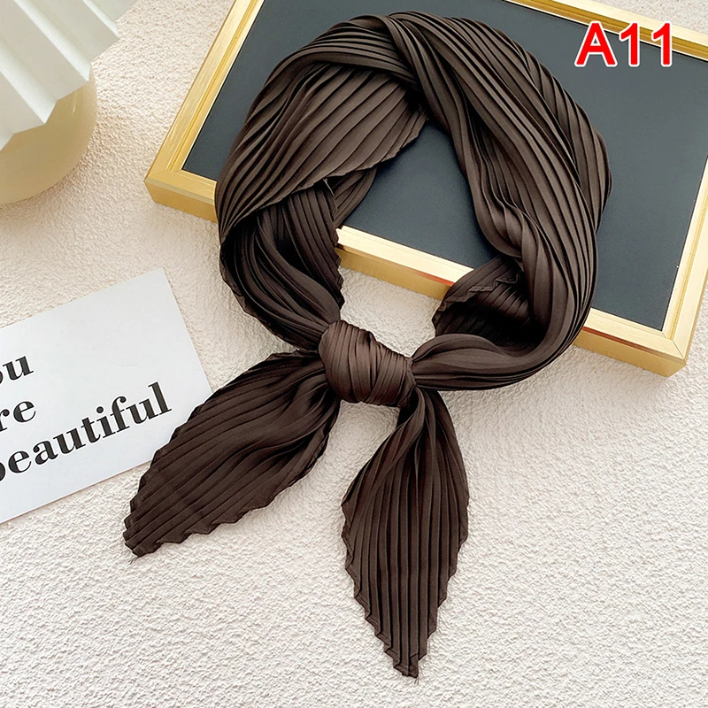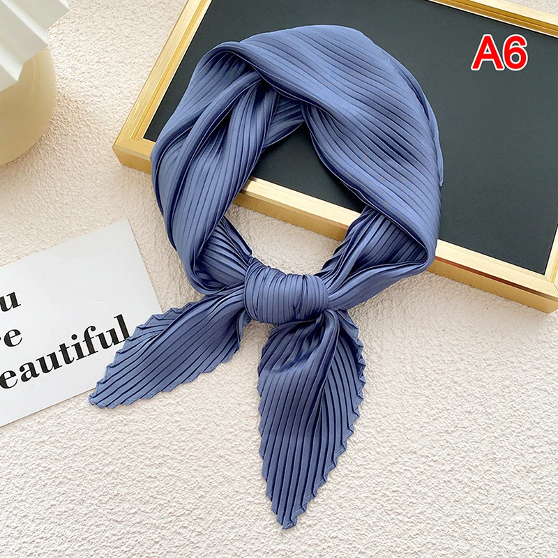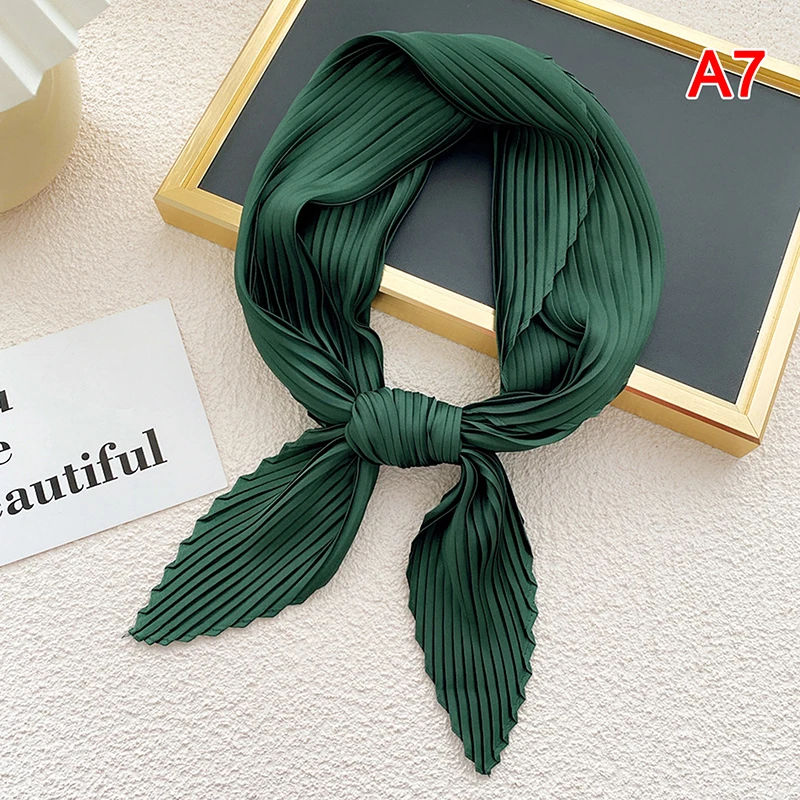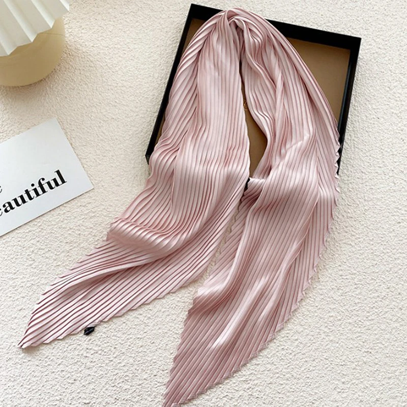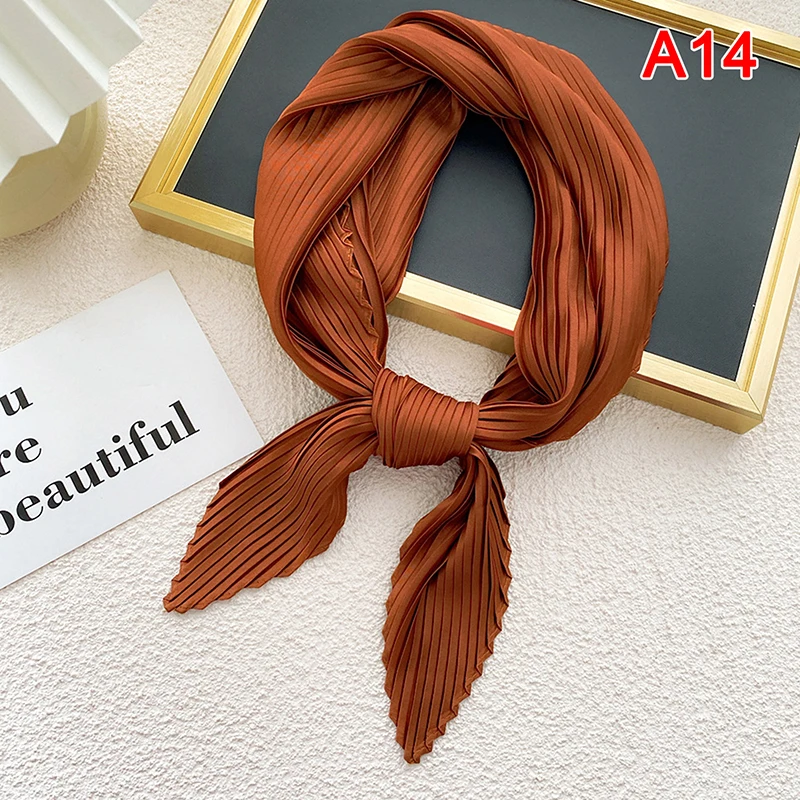 Плиссированные однотонные Атлас шарф Женская Косынка лента квадратный тощие волосы кабельная стяжка платок атласный фуляр шарфы платок украсить