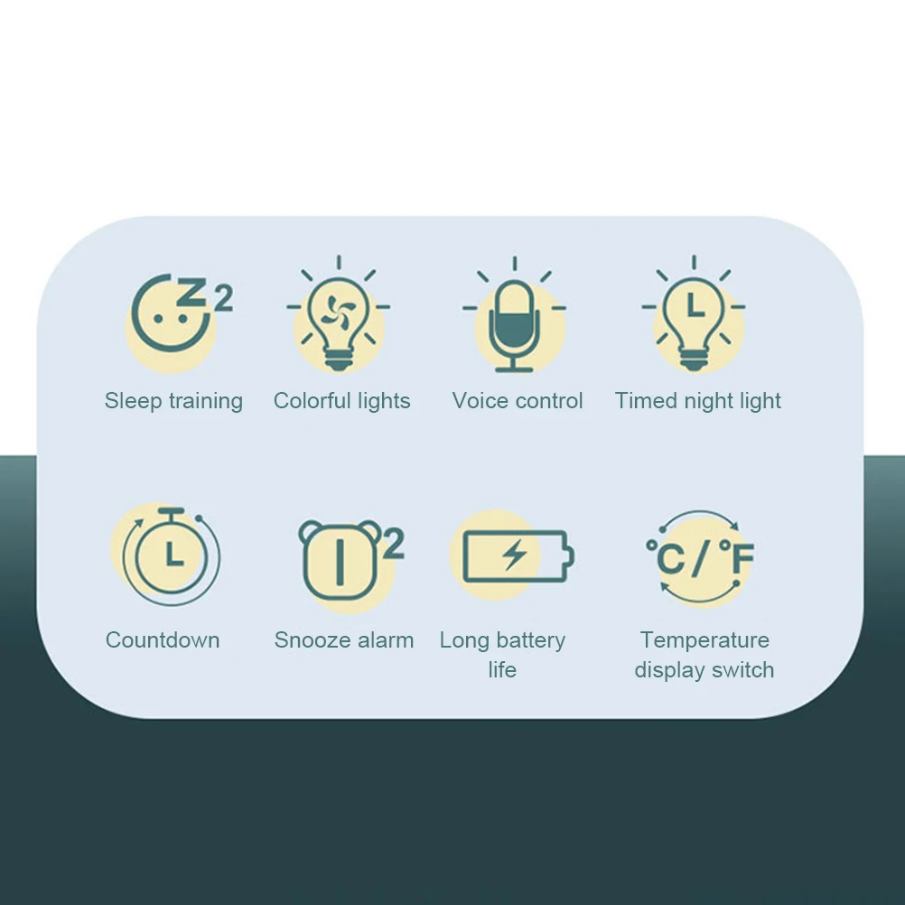 【Энергосберегающая модель и usb-зарядка 】 Детские будильники по умолчанию настроены на энергосберегающую модель. Вы можете разбудить его, нажав на часы или стол, хлопая руками и т. д. в будильнике используется литий-ионный аккумулятор большой емкости 2000 мА, который можно заряжать через usb-порт.