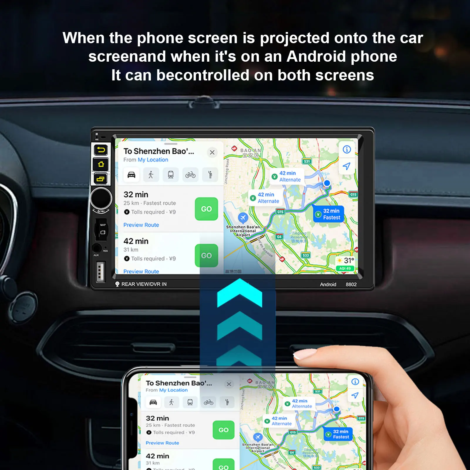 4、Mirror Link - Supports Android/iOS Mirror Link, you can watch videos on the stereo after connecting. The player has a built-in new Bluetoothes system for wireless audio transmission, which is more stable and has a built-in microphone for hands-free calls.