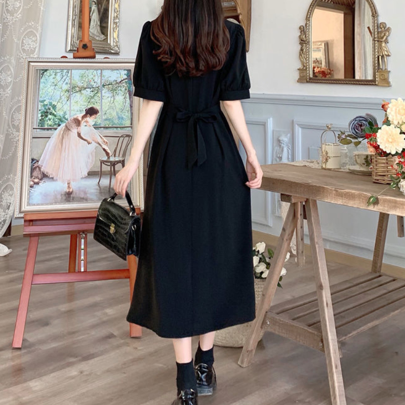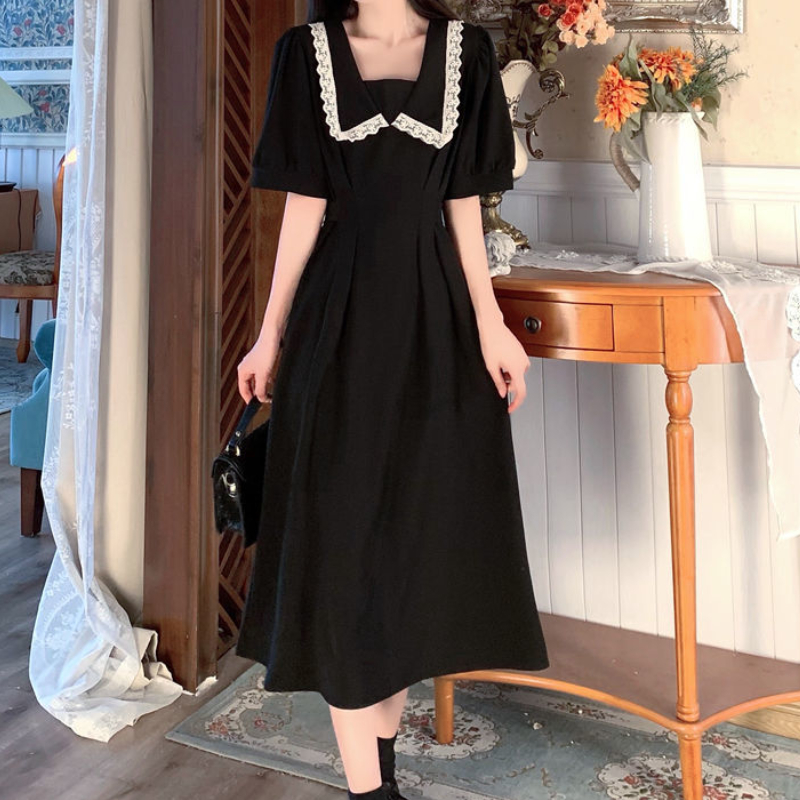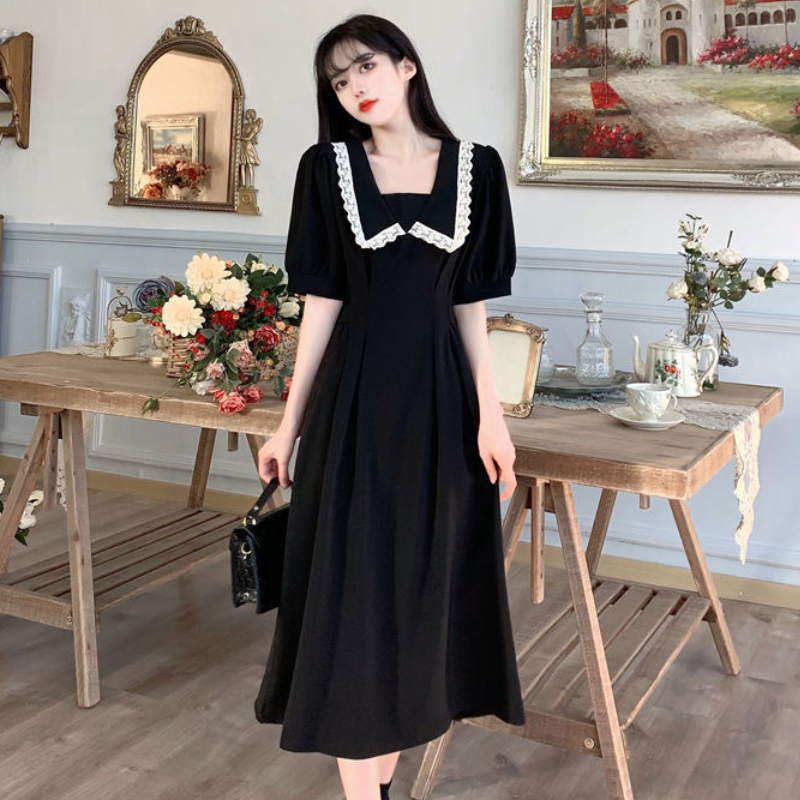 Женское мини-платье с квадратным вырезом кружевное однотонное платье-трапеция