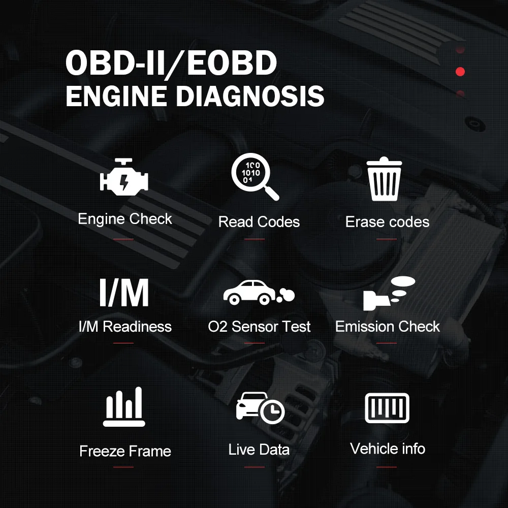 -- YA201-считыватель кода держателя с полными функциями OBD2 【чтение/очистка DTCs】, 【проверка готовности I/M, 【 просмотр потока данных в реальном времени 】, 【обзор данных с рамкой замораживания 】, testпроверка датчика O2, 【 Бортовой монитор системы Test】, 【EVAP системы Test】, 【информация о транспортном средстве 】, 【DTC Lookup】 функции.