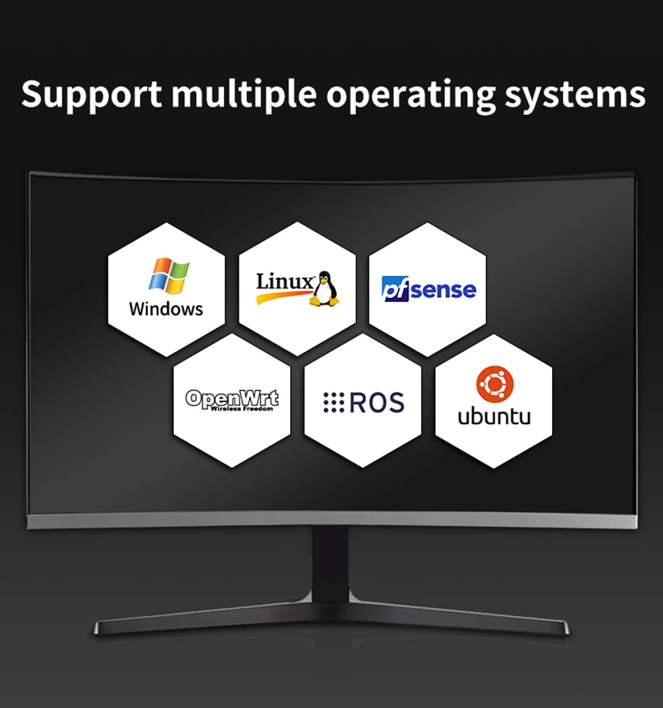 -Низкое потребление TDP и может быть установлен на задней части монитора с помощью кронштейна VESA (опционально).