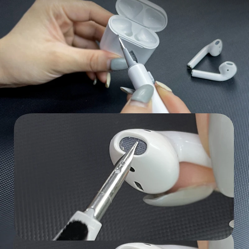 Набор для чистки наушников с флокирующая губка, кисть высокой плотности и металлический наконечник ручки, двойная головка скрытого дизайна для удовлетворения различных потребностей в очистке
