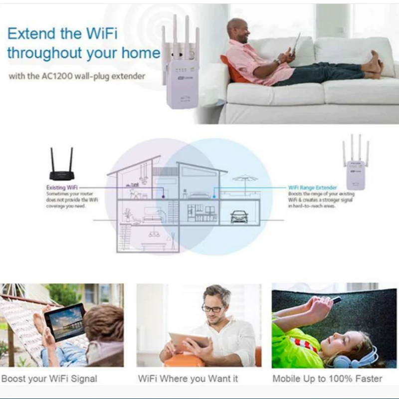 WR12 WiFi повторитель. Увеличьте ваш существующий диапазон сети и скорость,