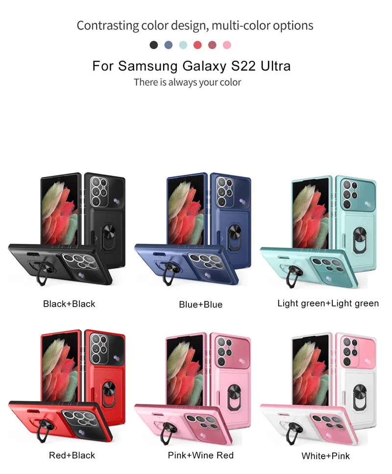 Многофункциональный чехол для Samsung Galaxy S22 Ultra Plus A13 A33 A53 A73 A12 A32 A52 A72 5G кольцевой защитный чехол для камеры с отделением для карт
