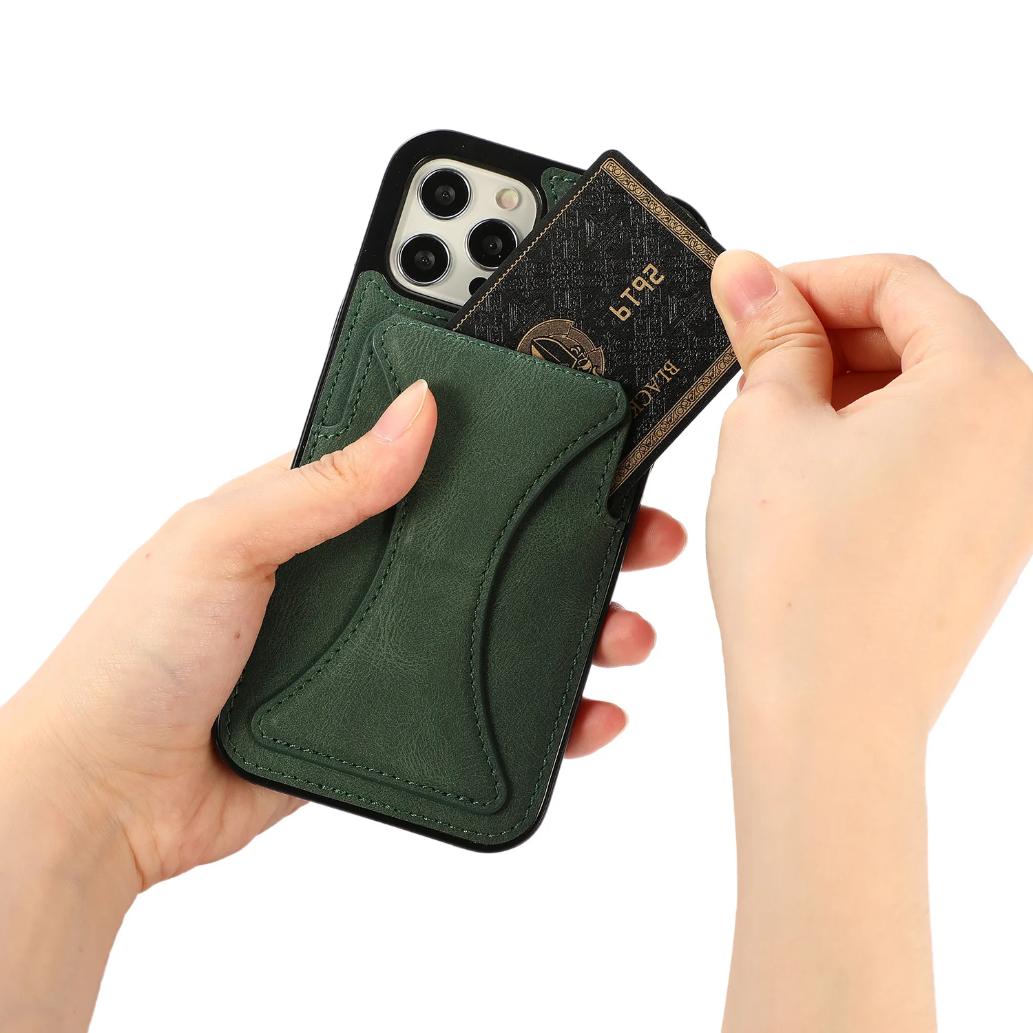 Роскошный чехол-держатель для карт для Iphone 13 Pro Max 13 12 Pro 12 Mini, кожаный чехол для Iphone 8 Plus Xs Max, Металлическая магнитная задняя крышка