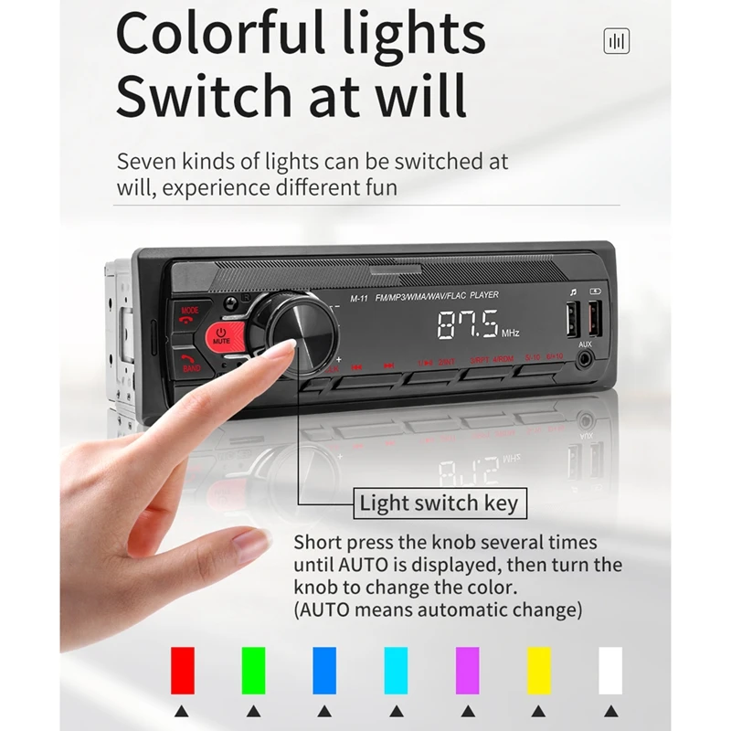 3. Аудиовыход RCA может быть подключен к сабвуферу; Красочные огни