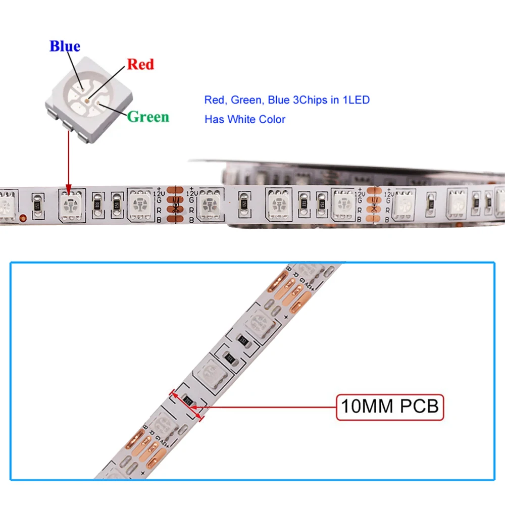 12 В RGB Светодиодная лента гибкая лента 1 м 2 м 3 м 4 м 5 м 10 м Светодиодная лента 60 светодиодов/м Водонепроницаемая многоцветная светодиодная лента DC12V украшение