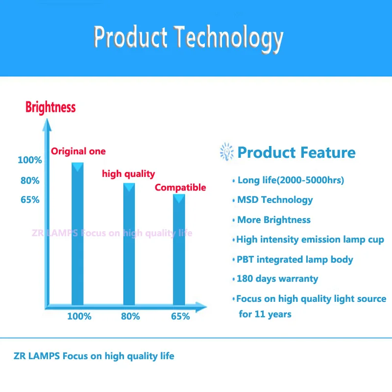 1.we promise that all projector lamp in our store are genuine ZR product. We provide 180 days warranty and after-sales.Please rest assured to order.