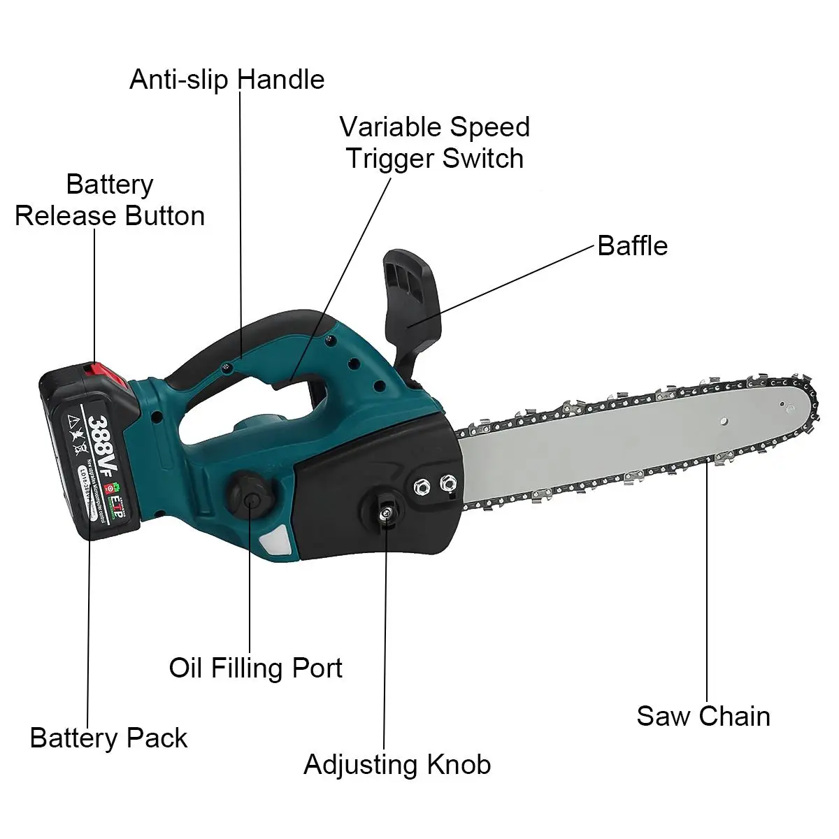【Мощный аккумулятор большой емкости 】 388VF, перезаряжаемый, работает эффективно. В каждой аккумуляторной коробке есть 10 бар батарей, которые работают вместе с бесщеточным двигателем для эффективной работы. 【Удобная Кнопка регулировки цепи Это удобно и быстро. Вы можете регулировать герметичность цепи, поворачивая черную кнопку сбоку. Меньше зависимости от аксессуаров гаечного ключа. 【Боковой масляный вход дизайн 】 Поверните черную кнопку сбоку и добавьте обычную промышленную смазку или профессиональное масло для влажной цепи, чтобы удобно смазать цепь и избежать помех. 【Регулировка скорости выхода масла Быстро при прокатке вперед, медленно при прокатке назад. Свободно Контролируйте скорость доставки масла.