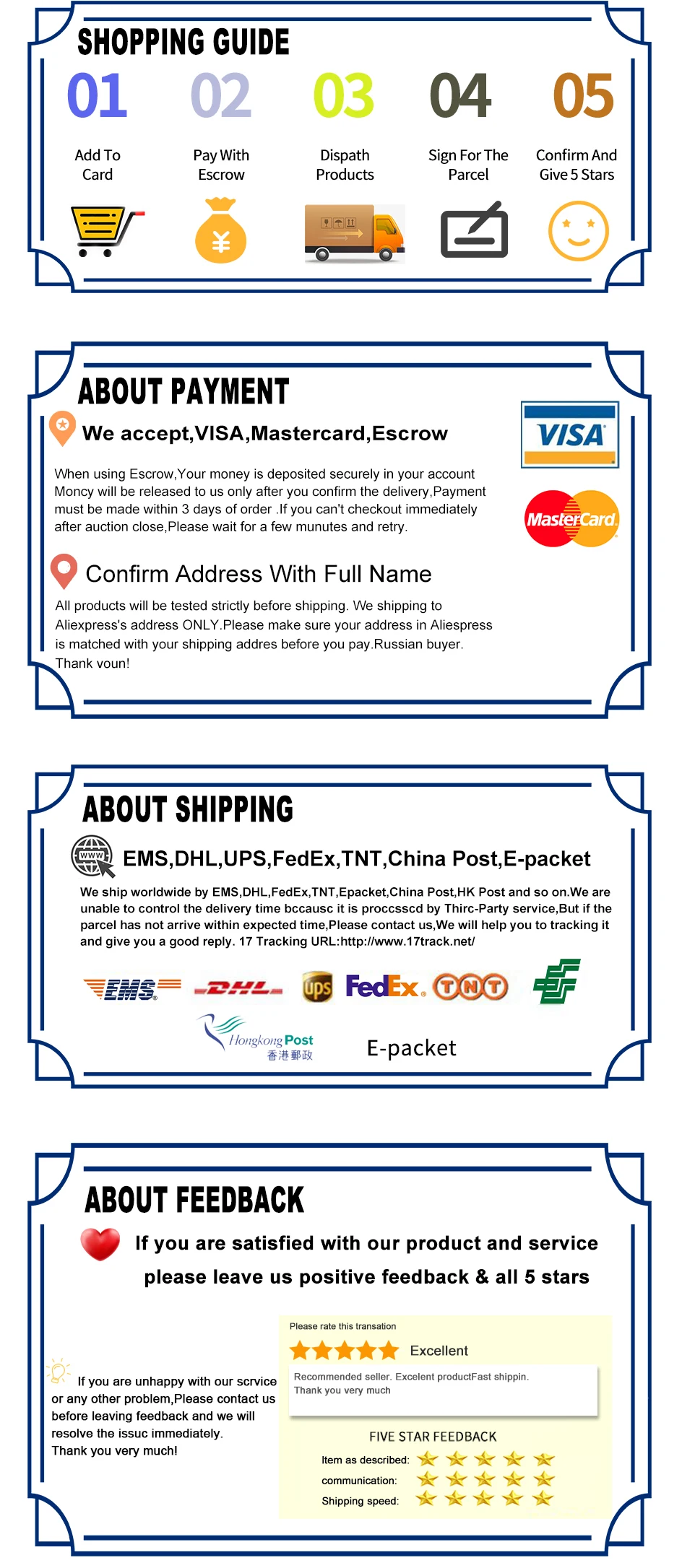 4. Если вы не получили ваши товары вы покупаете; В противном случае посылка задерживается, С нами можно связаться следующими способами не дайте нам 1 звезда. Из-за глобального COVID-19 эпидемии, международная доставка не является стабильным и медленно. Мы также принимаем пострадавший в качестве международным продавцом. Пожалуйста, свяжитесь с нами во-первых, мы поможем вам решить проблему. Спасибо за понимание.