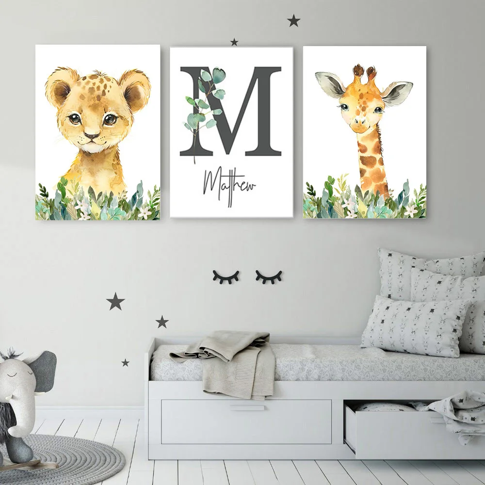 Характеристика: постер с животными с настраиваемым именем ребенка Премиум Холст, HD печать, цвет длится долгое время
