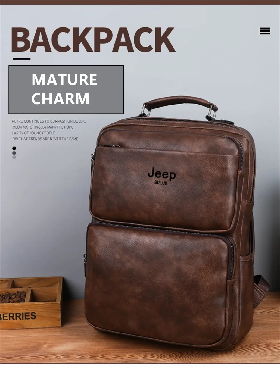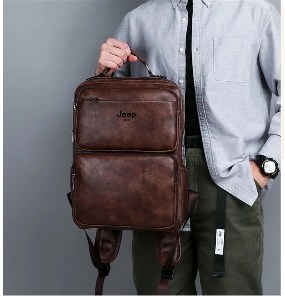 JEEP BULUO большие брендовые 14 дюймовые сумки для ноутбука Большой Вместительный рюкзак для путешествий на открытом воздухе мужские дорожные сумки из спилка