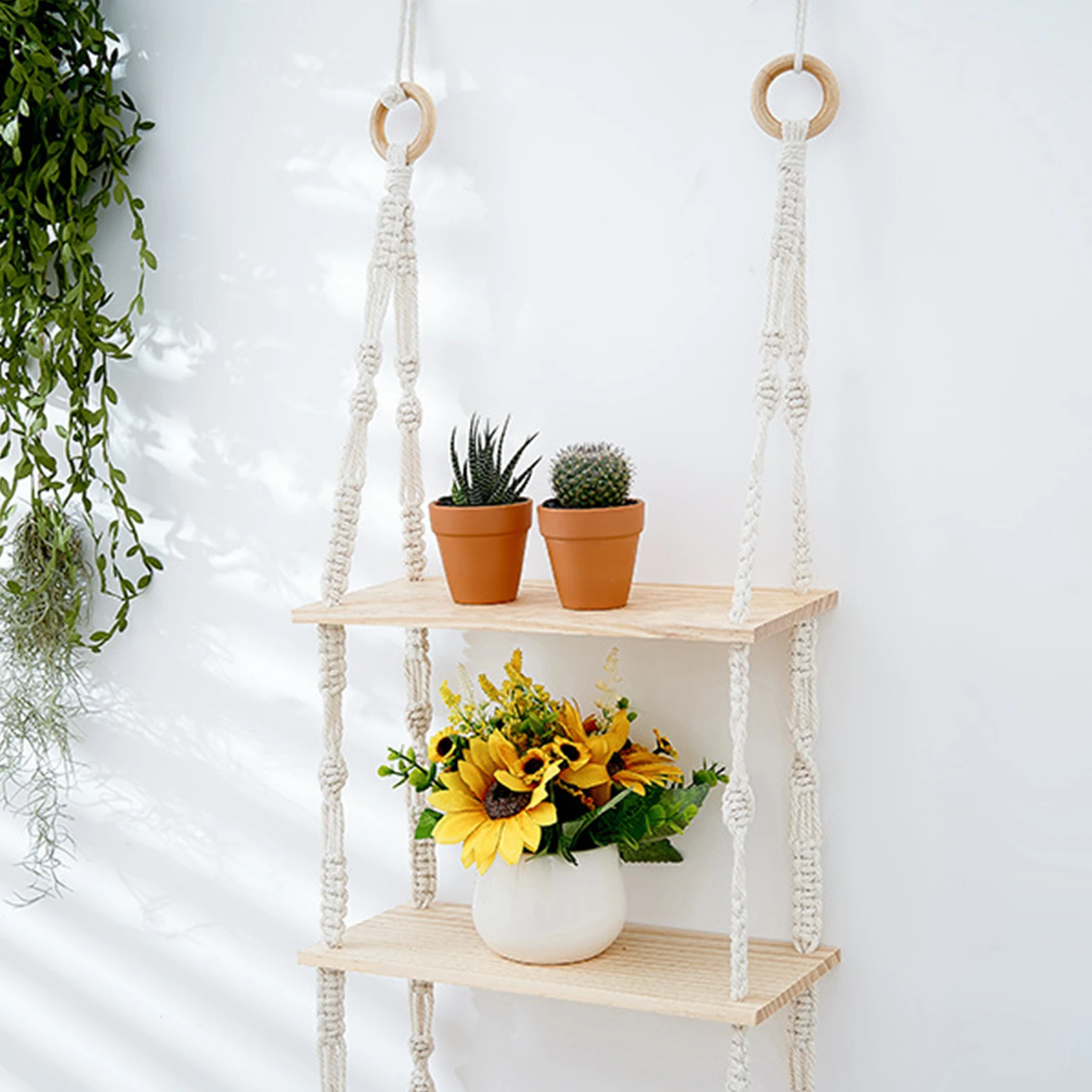 3. 3 ярусный деревянный стеллаж: тканый гобеленовый стеллаж может отображать ваши любимые сочные растения, свечи, рамки для картин, книги, персональные артефакты и другие общие бытовые потребности.