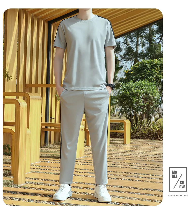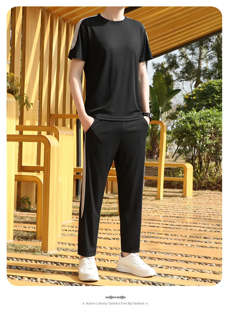 Мужской спортивный костюм из двух предметов повседневная однотонная спортивная