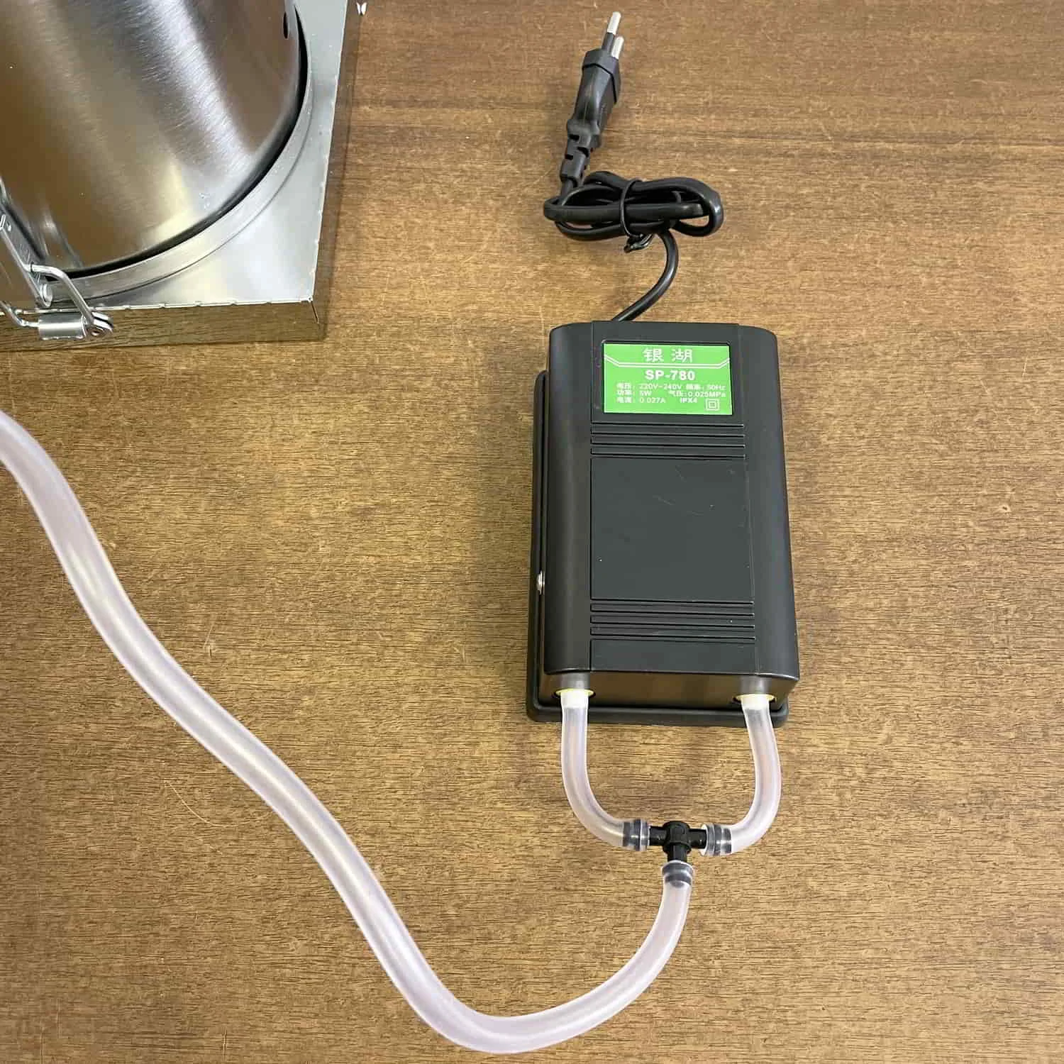 Hanhi 2 – дымогенератор для холодного копчения мяса и рыбы при температуре 19-40 °C. Оснащен золосборником и тарельчатым охладителем с краном для слива конденсата и смол. Емкости для щепы объемом 5 литров достаточно на 12 часов автономной работы, для розжига предусмотрено отверстие у основания. Угловая конструкция бункера обеспечивает лучшую тягу и равномерное тление щепы. Дымогенератор изготовлен из пищевой нержавеющей стали. В комплекте воздушный компрессор и шланги. Камерой для копчения послужит практически любая емкость, удерживающая дым. Срок службы 10 лет.