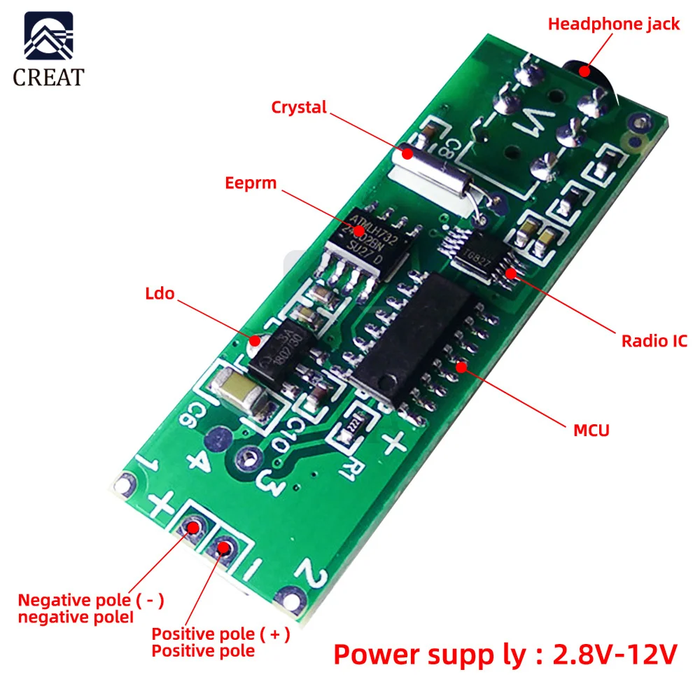 RDA5807 двухканальный стерео FM радио модуль FM приемник плата 76,0 МГц ~ 108,0 МГц DC 2,8 V-12V