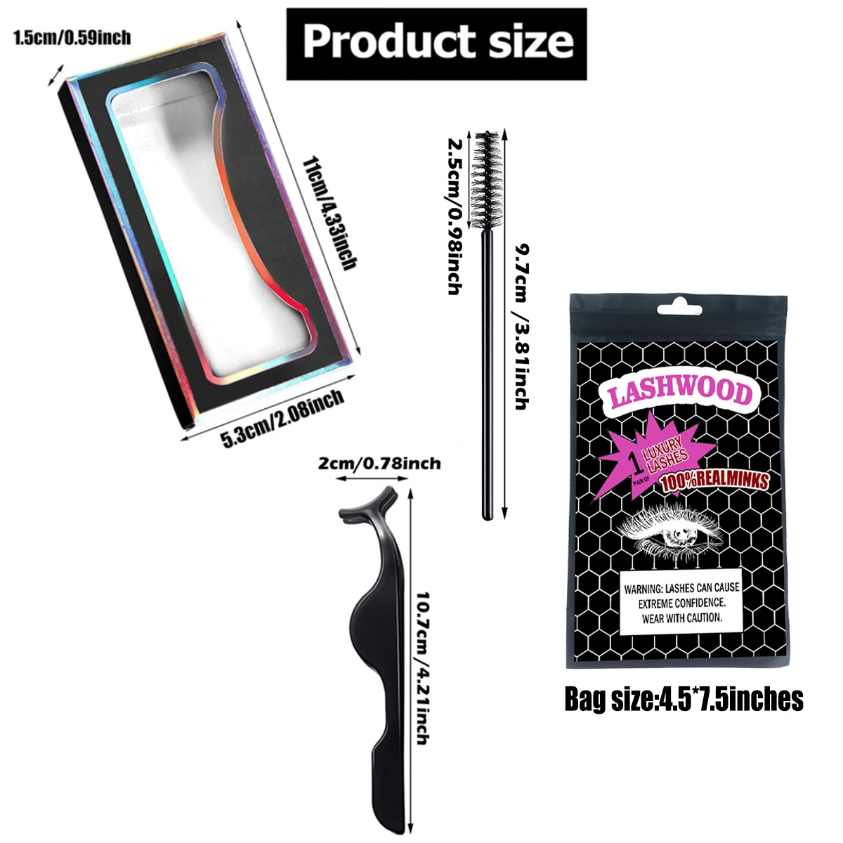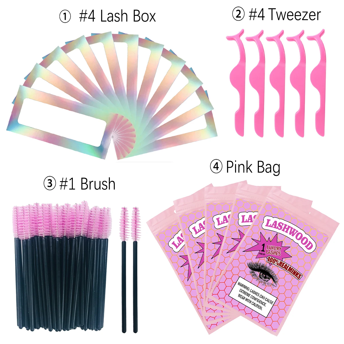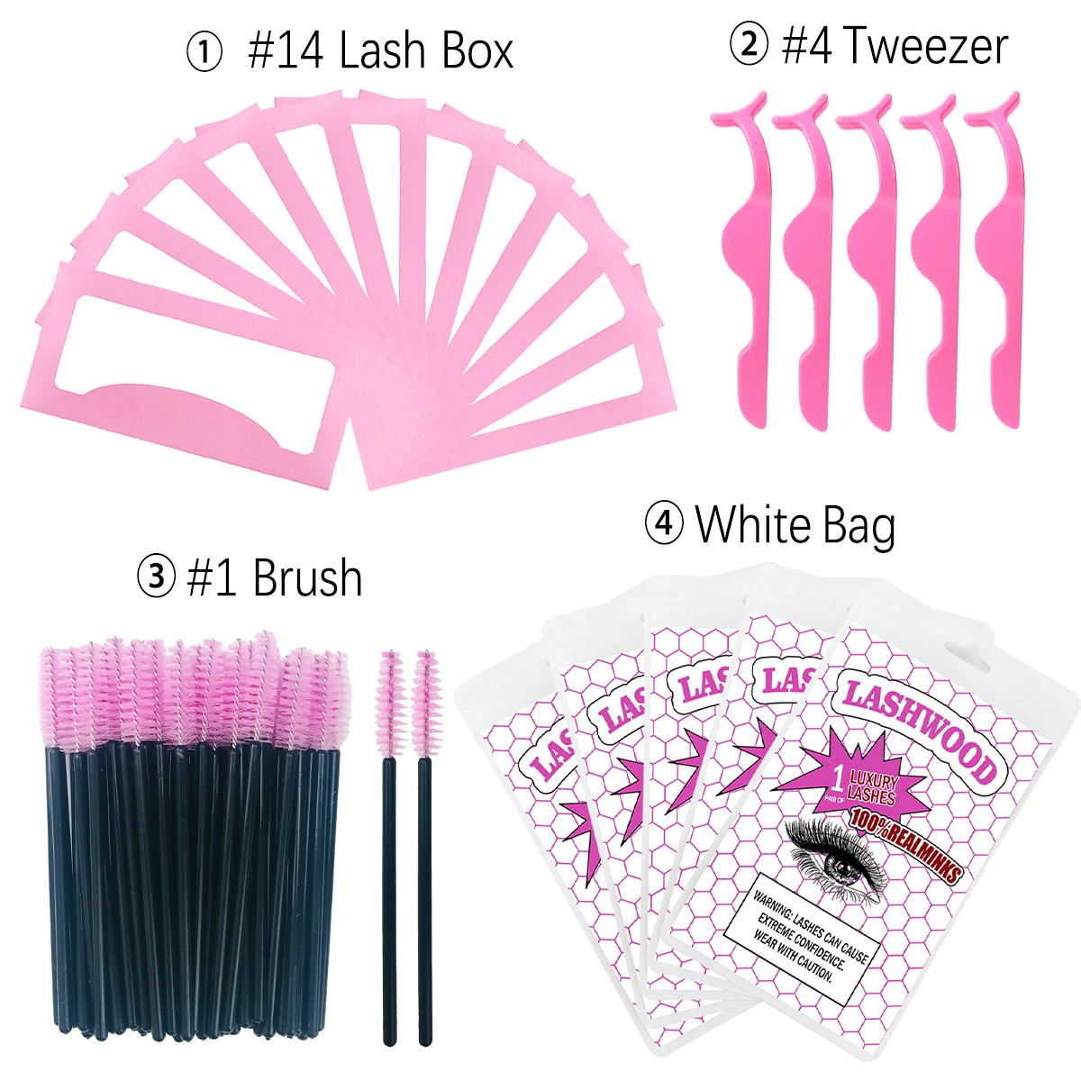 1. В комплект входит: бумажная коробка для ресниц, сумка для ресниц, кисть и пинцет
