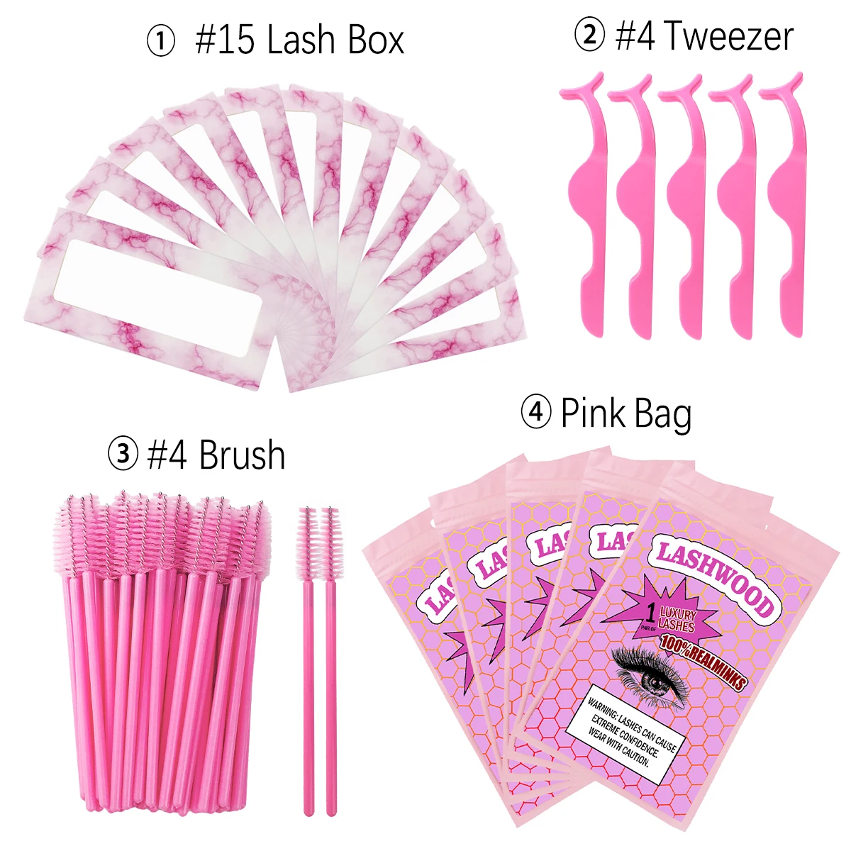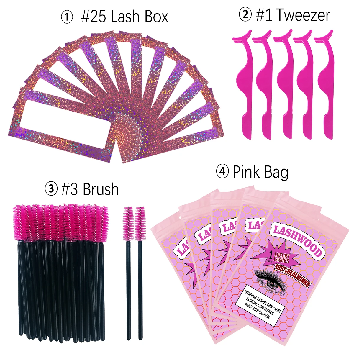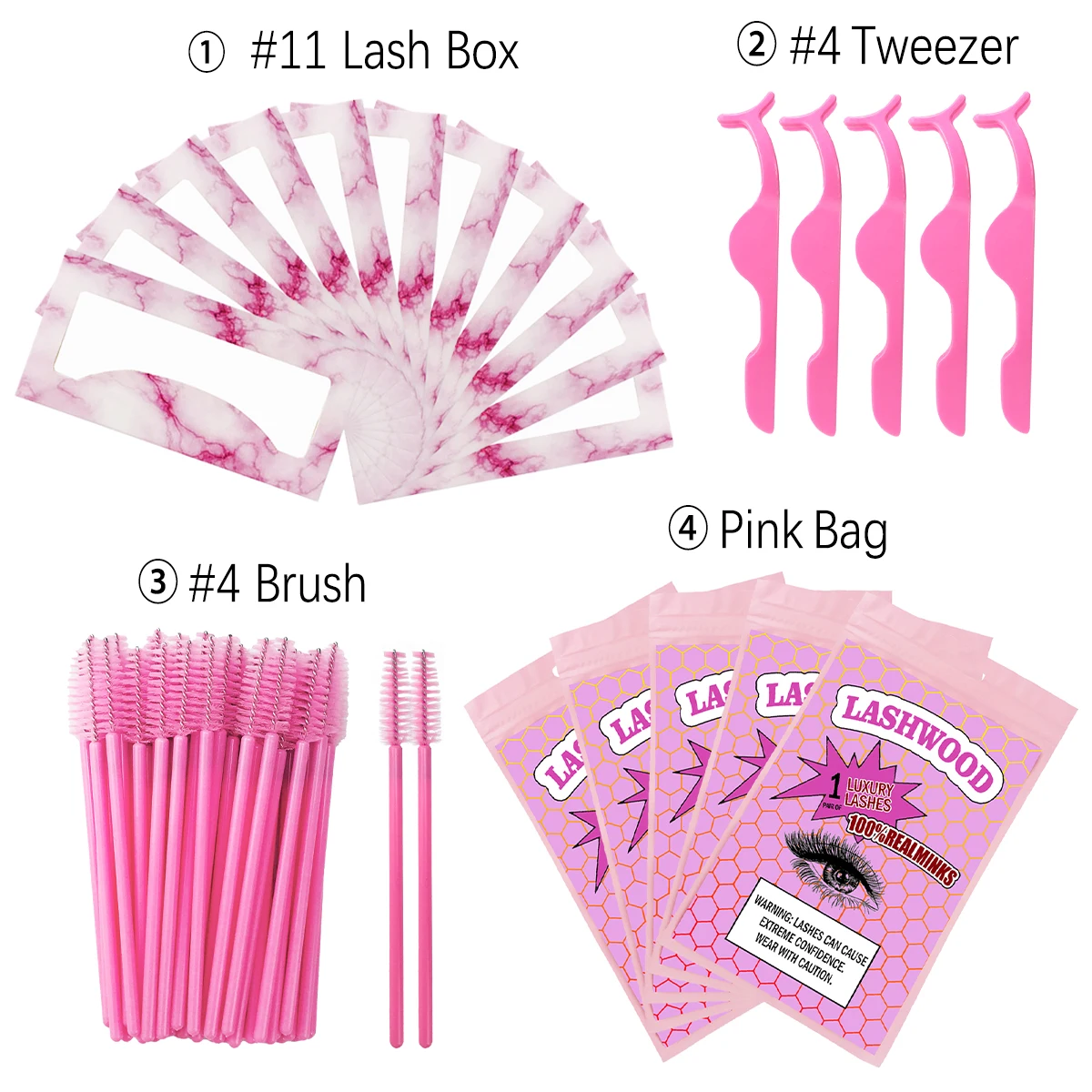 1. В комплект входит: бумажная коробка для ресниц, сумка для ресниц, кисть и пинцет