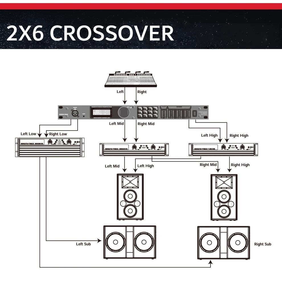 ♦2 канала XLR вход и 6 каналов XLR выход