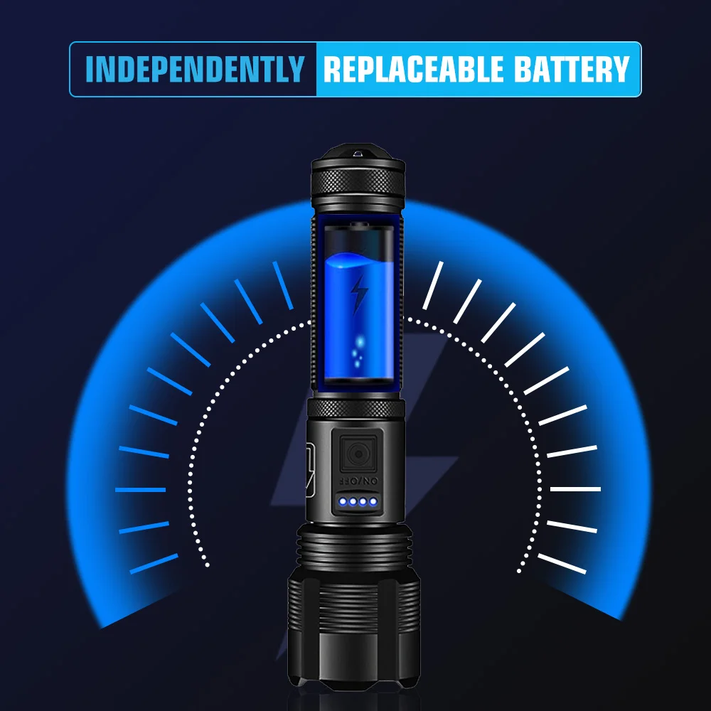 ●Жесткий и надежный: Изготовлен из алюминиевого сплава, износостойкий, устойчивый к падениям, водонепроницаемый фонарик. Более прочным.
