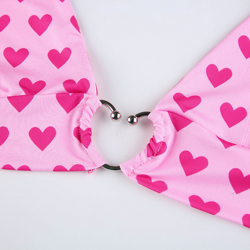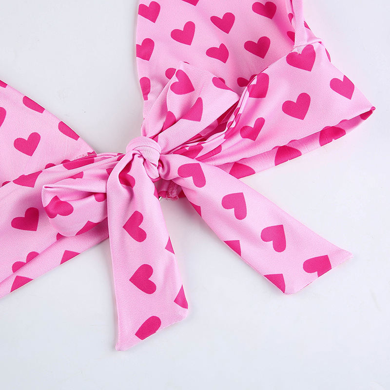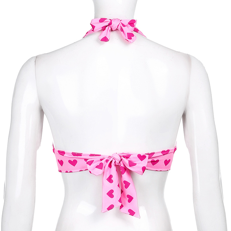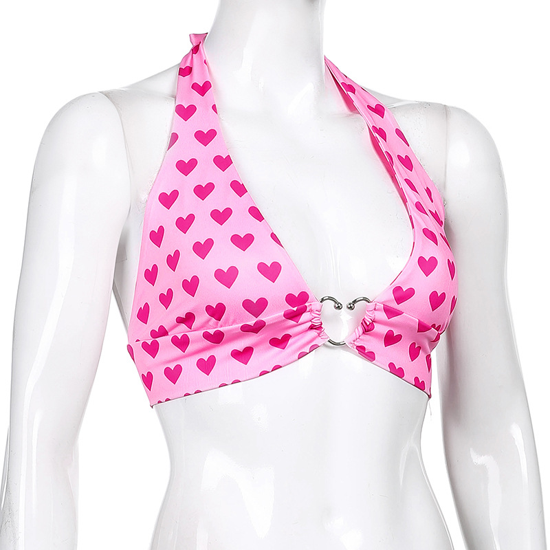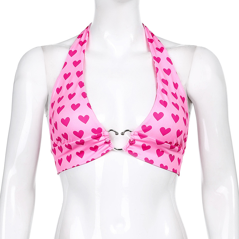 Женский топ без рукавов с открытой спиной и принтом сердца на шнуровке