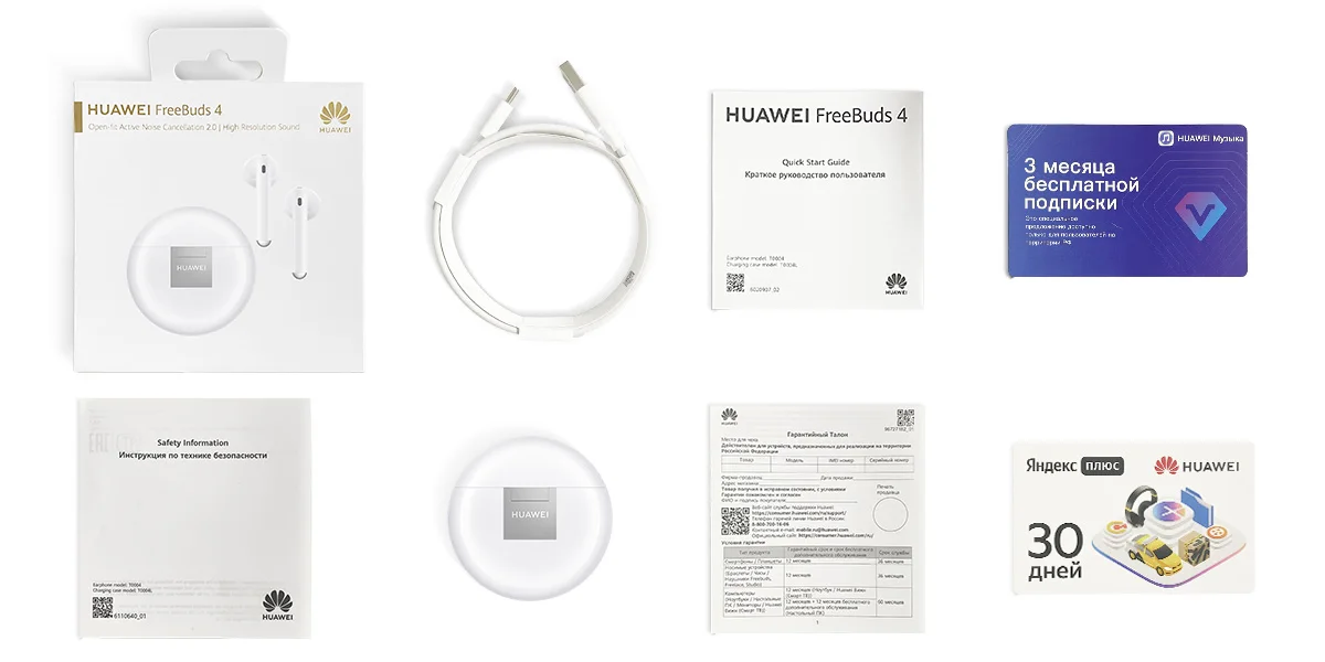 Каждый наушник: 41,4 мм*16,8 мм*18,5 ммВес: около 38 г (без наушников)Активное шумоподавление;10 часов непрерывного воспроизведения;Чистый звукВремя воспроизведения: Воспроизведение музыки после 1 зарядки: 4 часаФункция активного шумоподавления для наушников HUAWEI FreeBuds 4 с полуоткрытым дизайном возведена на новый уровень, каждый наушник весит всего 4,1 г, они удобны при ношении, практически не ощущаются в ушах и обеспечивают качественное звучание. Ознакомьтесь с