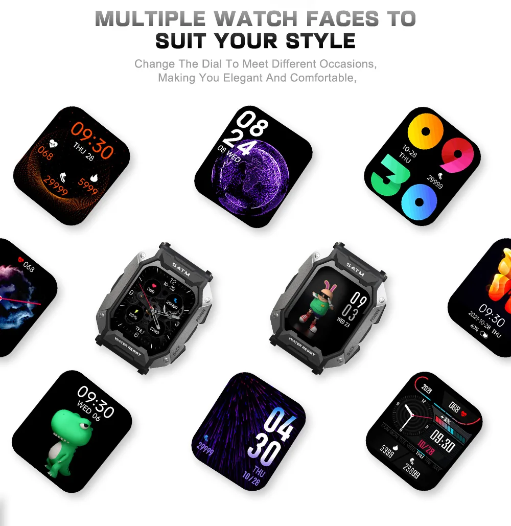 Несколько циферблатов часов, несколько спортивных режимов (ходьба, бег, Велоспорт и т. д.)