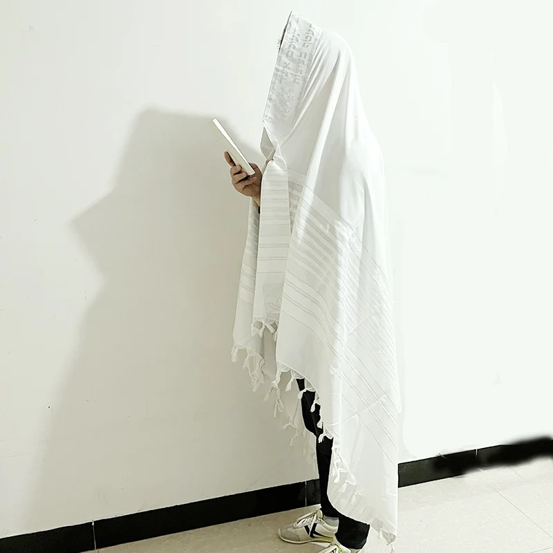 Judaica израильские, еврейские Talit белого цвета из полиэстера, большой Размеры гадол к молитве шаль Tallit с сумкой 140x190cm