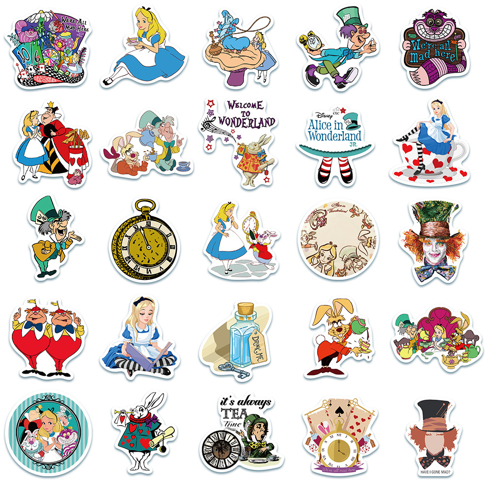 10/50 шт в наборе, Disney аниме Алиса в стране чудес (Alice in наклейка Страна Чудес скейтборд Чемодан компьютерный Шлем DIY стиле «граффити» из мультфильма; Стикеры детские игрушки