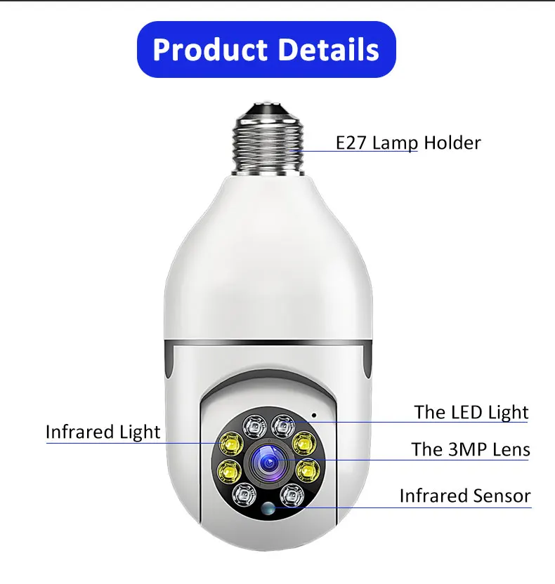 3MP E27 лампа камера видеонаблюдения камера WiFi CCTV камера PTZ Водонепроницаемая 4X цифровой зум Домашняя безопасность