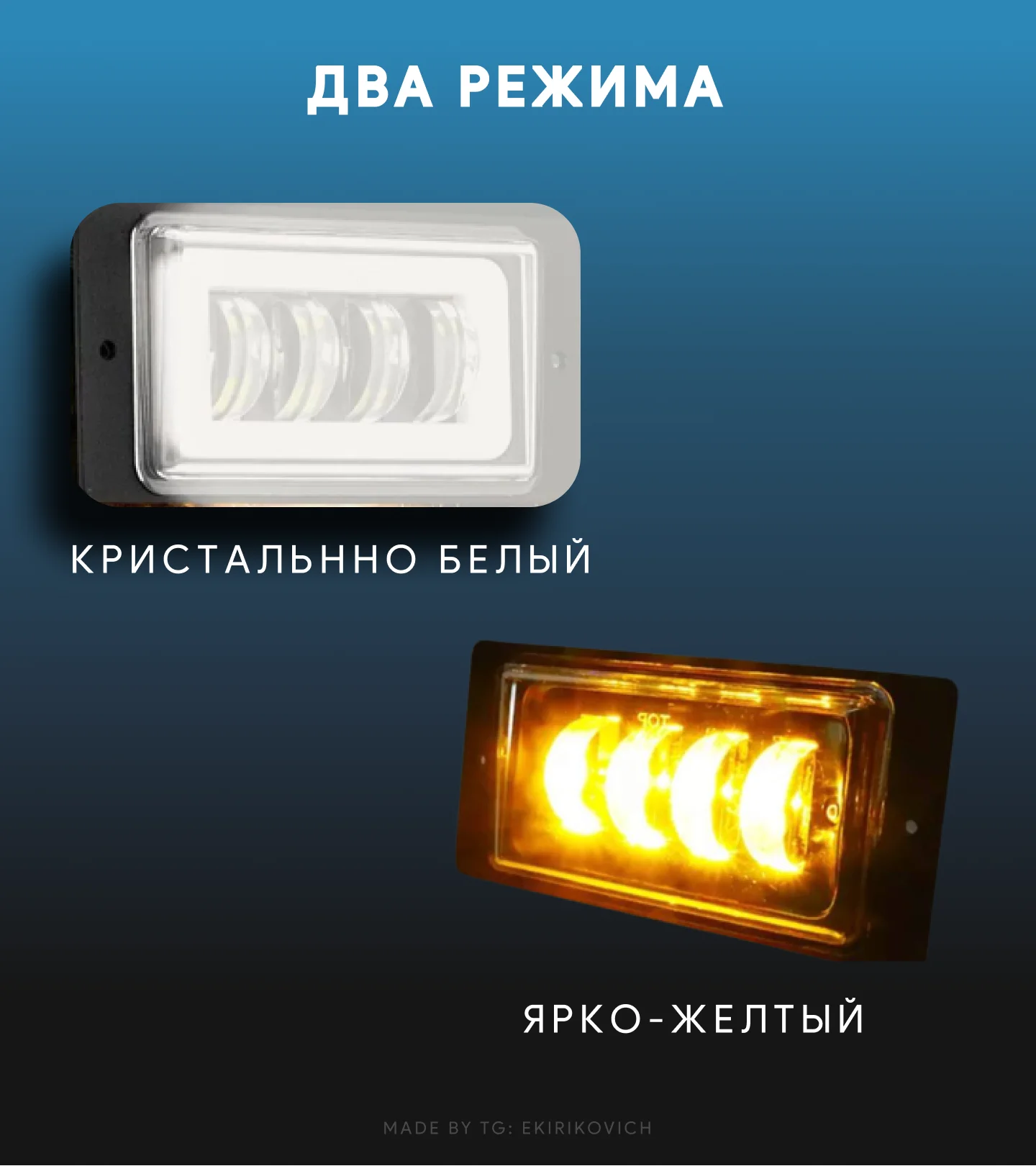 2) Два режима работы - кристально белый/ярко желтый.