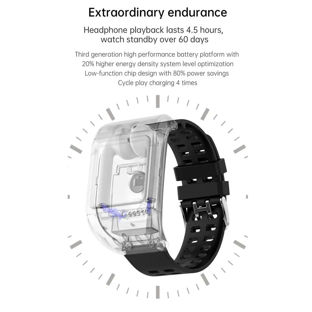 Аккумулятор часов: 400 мАч, в режиме ожидания более 60 дней, может заряжать гарнитуру 4-5 раз