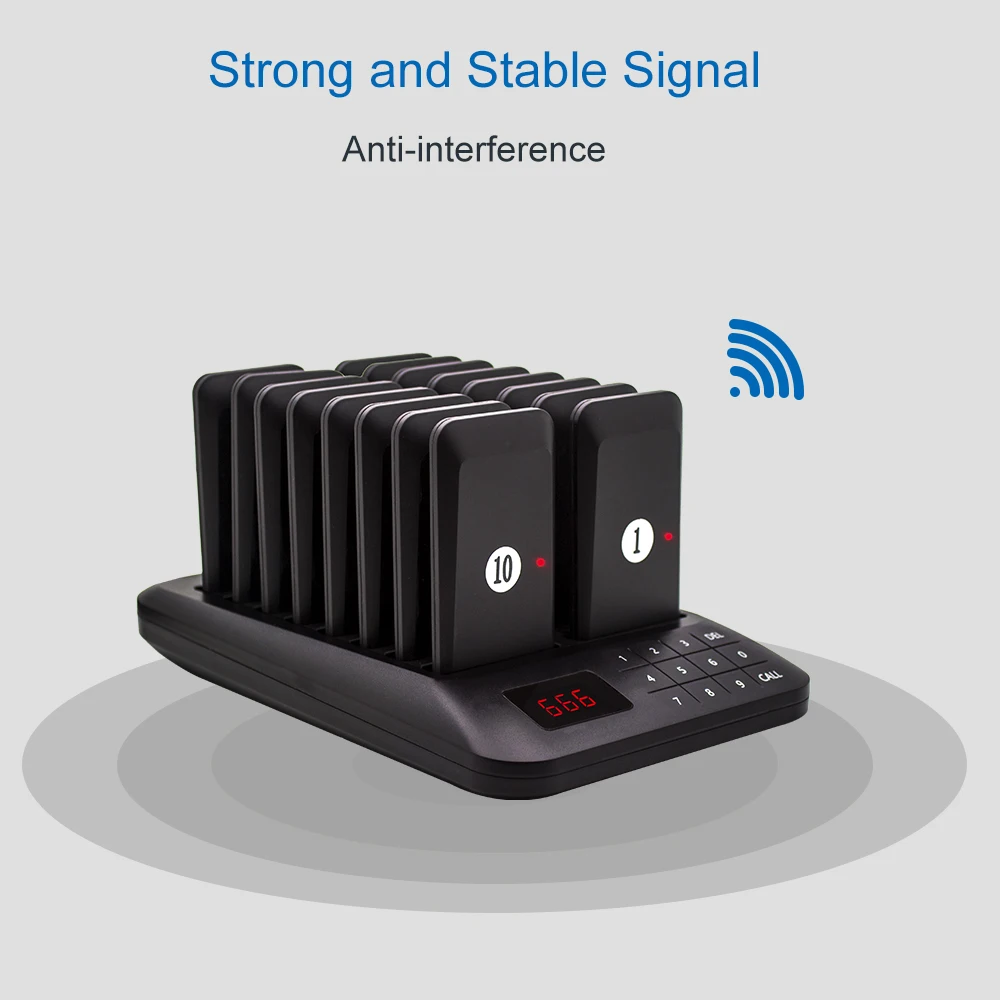 Описание: Спасибо за посещение нашего очереди Беспроводная система вызова веб-страницы. беспроводной системе подкачки состоит из одного 999 вызова канала кнопочная клавиатура передатчик (зарядное устройство базы) и 16 шт. беспроводной пейджерам (портативный зуммер и вибрации приемники). Он принимает РФ беспроводной технологии с миллионы различных коды обучения.Когда клиент размещает заказ, он (она) будет предоставлена один пейджер приемник с номером, когда заказ будет готов, Официант нажмите клавиатуры номер вызова пейджер, Затем клиент получит информацию по зуммер/вибрации/Светодиодные индикаторы пейджера. Теперь они широко используются в Ресторан быстрого питания, фуд-корт, клиника, Церковь и авто магазин или другие очереди случаев. преимущества: сохранить стоимость трудаулучшить обслуживание изображенияСамое главное, повысить эффективность Особенности: Беспроводная технологиявибрации/зуммер быстрое дополнительноВстроенный аккумулятор999 каналов клавиатуры кнопки вызова16 зарядки батареи слотыКаждая система с возможностью расширения до 9999 пейджерыПортативный и аккумуляторная вибрации и зуммер пейджернезависимой памяти хранения избегая потери данныхВысокая чувствительность приемникаСамотестирование при включении питаниякрасивый и модный дизайнРасстояние передачи составляет около 1000 м в открытой местности