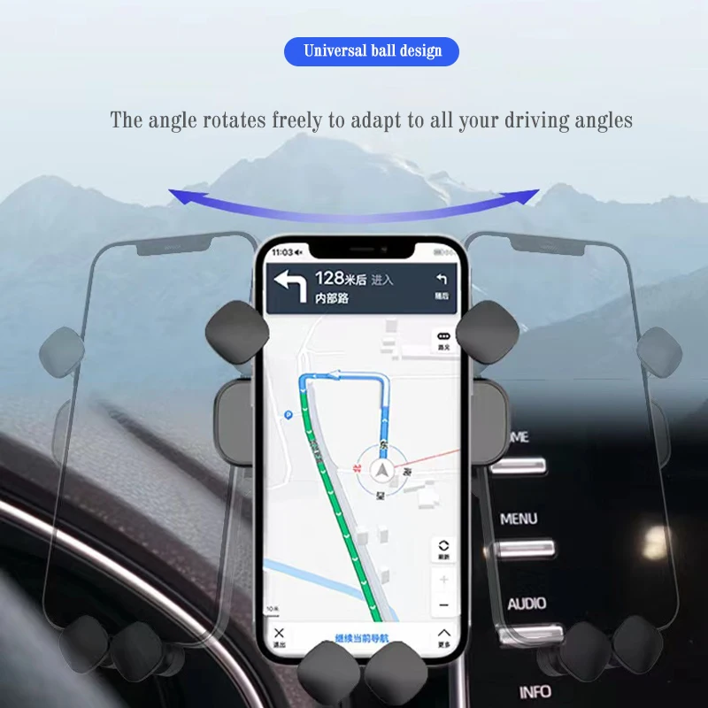 Дизайн: инновационный дизайн, гравитационная связь и треугольная поддержка, автоматически зажимается, когда телефон надевается на держатель, устойчивый и стабильный, отпустите автоматически, когда снимите телефон с держателя, легко и удобно. Прочная и хорошо Защитная: Высококачественная резка из алюминиевого сплава, поверхностное окисление, Для крепления на автомобиле используется эластичный и противоскользящий зажим, плотно удерживающий вентиляционное отверстие, мягкие резинки на вентиляционном отверстии, чтобы не царапать устройства.