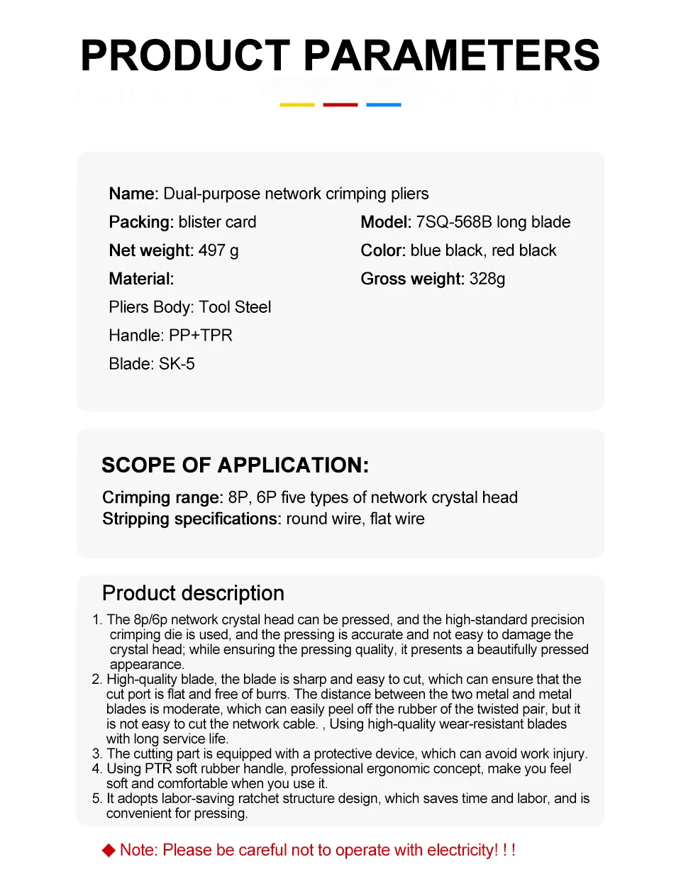 2. Качественное лезвие, лезвие острое и легко режется, может гарантировать, что отрезной Порт плоский и без заусенцев, а расстояние между двумя металлическими лезвиями умеренное. Он может легко полоскать резину витой пары, но его нелегко отрезать сетевому кабелю. Высококачественные износостойкие лезвия имеют длительный срок службы....