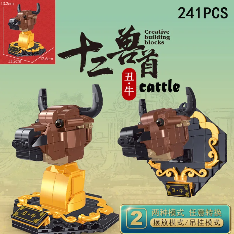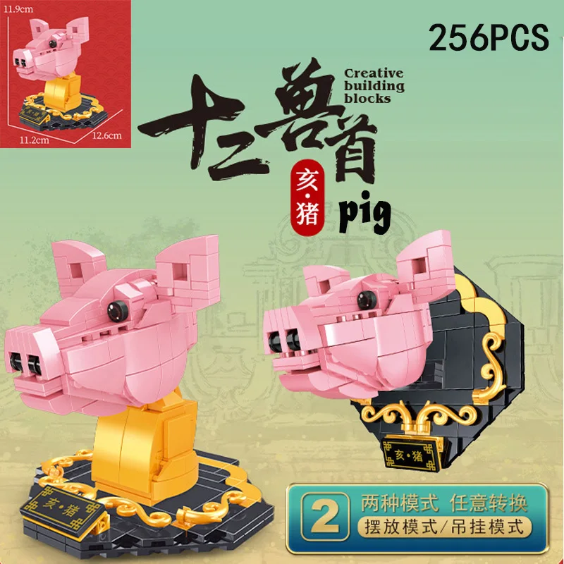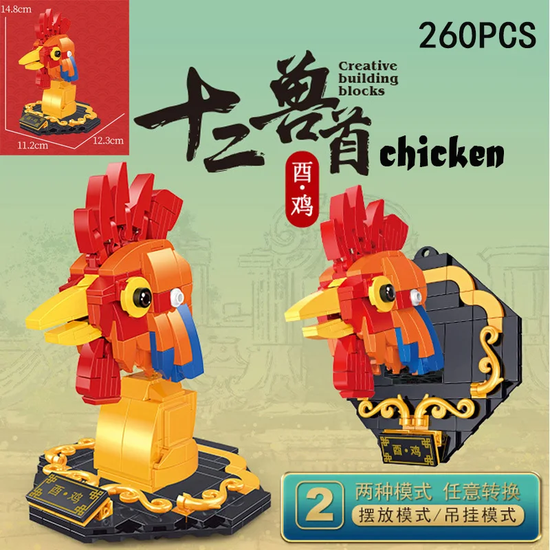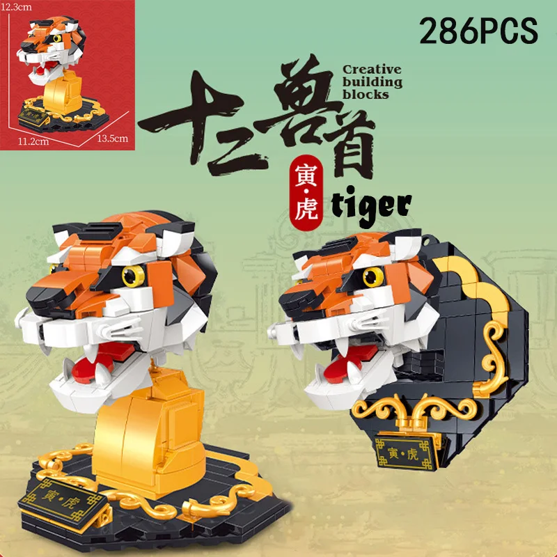 Строительные блоки с рисунками животных из мультфильмов, 12 зодиака, корова, тигр, кролик, дракон, лошадь, овца, обезьяна, курица, собака, свинья, подарки для детей