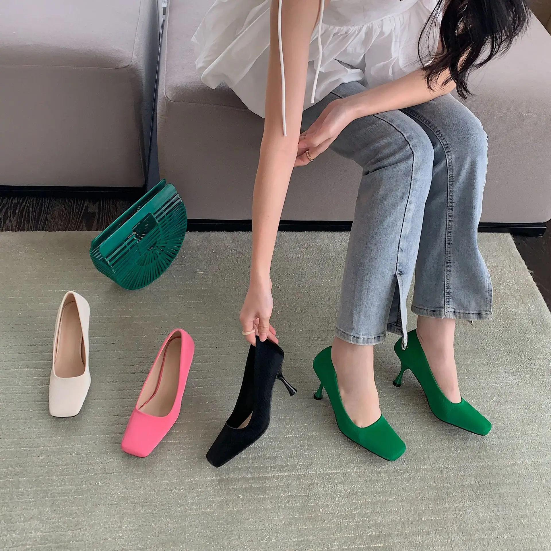 Женские босоножки на высоком каблуке туфли-лодочки с острым носком без застежек