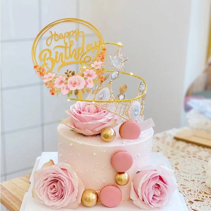 1 шт. цветочный Топпер для торта «С Днем Рождения» Золотое акриловое зеркальное украшение для торта на день рождения Декор для детского душа